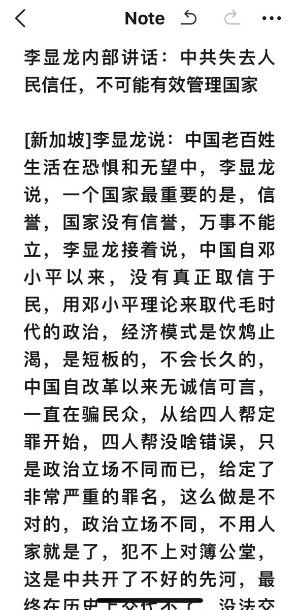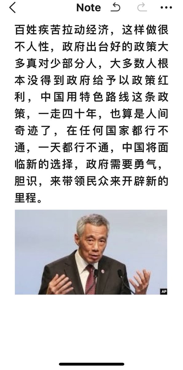 据说是新加坡总理李显龙说的:中国老百姓生活在恐惧和无望中……