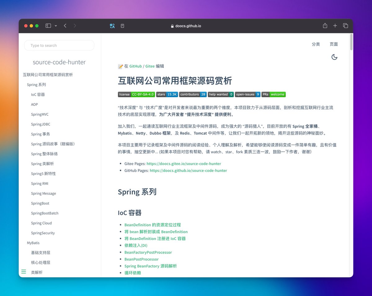 - 互联网公司常用框架源码赏析 -GithubPages