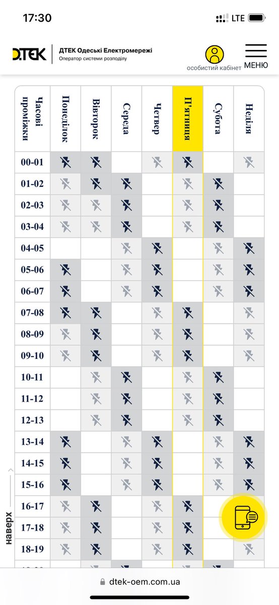 🇺🇦⚡️没电的生活又她妈的开始了!这是时间表,只有白格子的时间才有电,每个白天基本上只有三个小时的供电! 特别Slava 😑😑😑