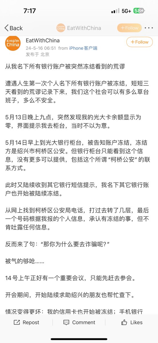 一个基层小片警可以冻结你所有银行账号并且不告知原因。
