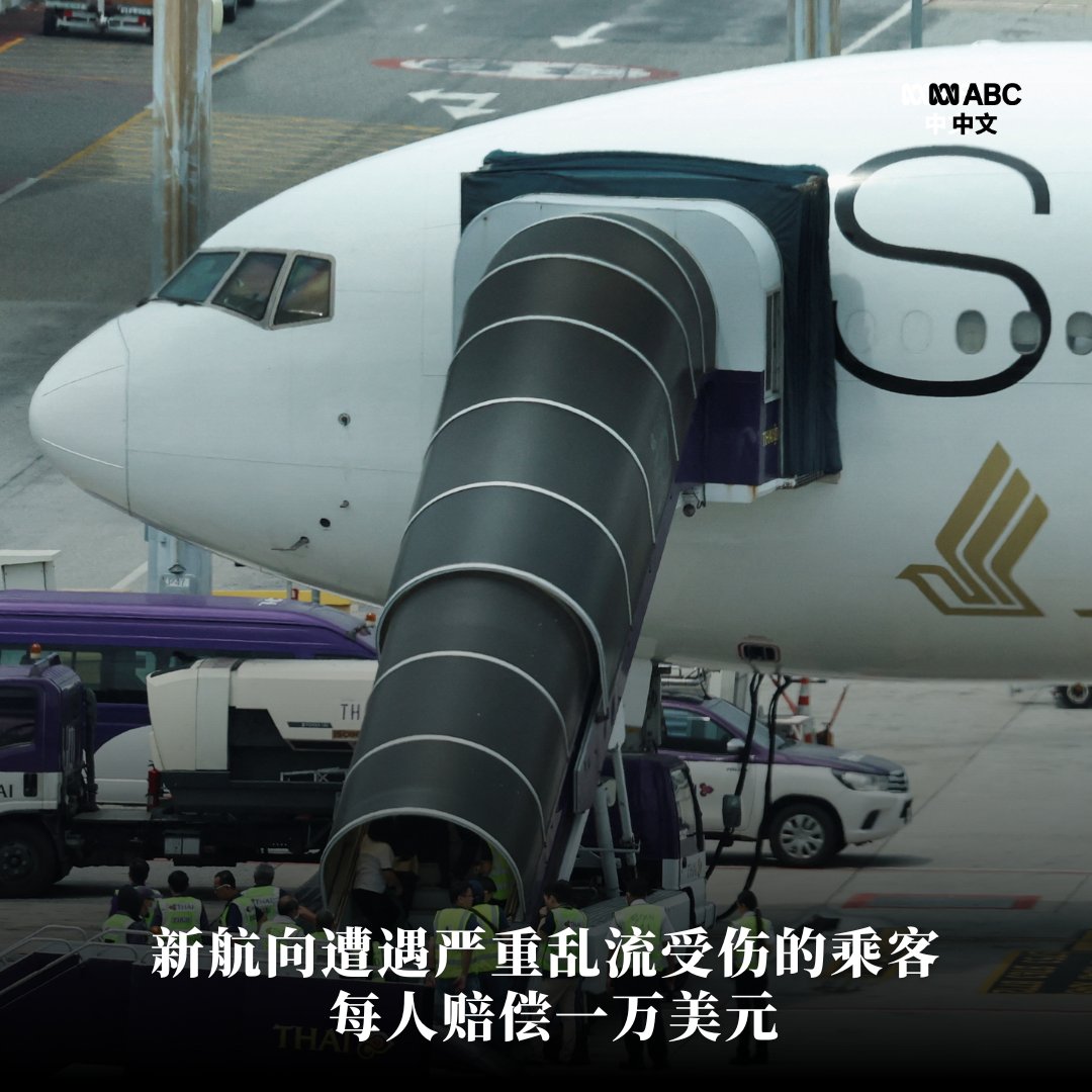 新加坡航空公司已向5月21日遭遇严重乱流而受伤的乘客提供每人一万美元的赔偿。受重伤者则可获得2.5万美元的预付款。新航还表示,所有乘坐SQ321航班的乘客还可以获得全额退票,并为所有乘客提供1000新元以支付他们在曼谷的紧急开支。