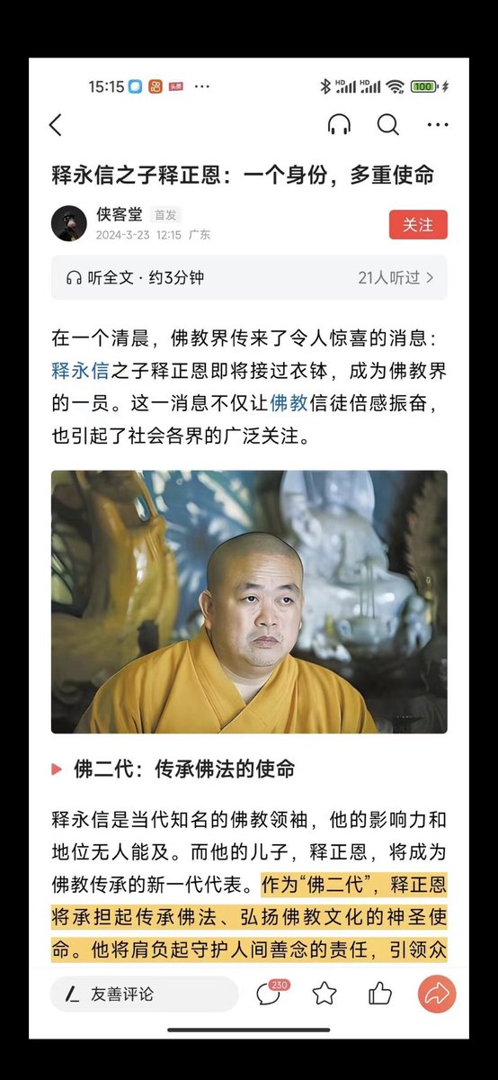 新名词:“佛二代”……网友:与三胖齐名…【释永信之子释正恩:一个身份,多重使命】释永信之子释正恩即将接过衣钵……变相世袭制、变相终身制,黑暗笼罩大地,除非被“大光”光照……那真光!