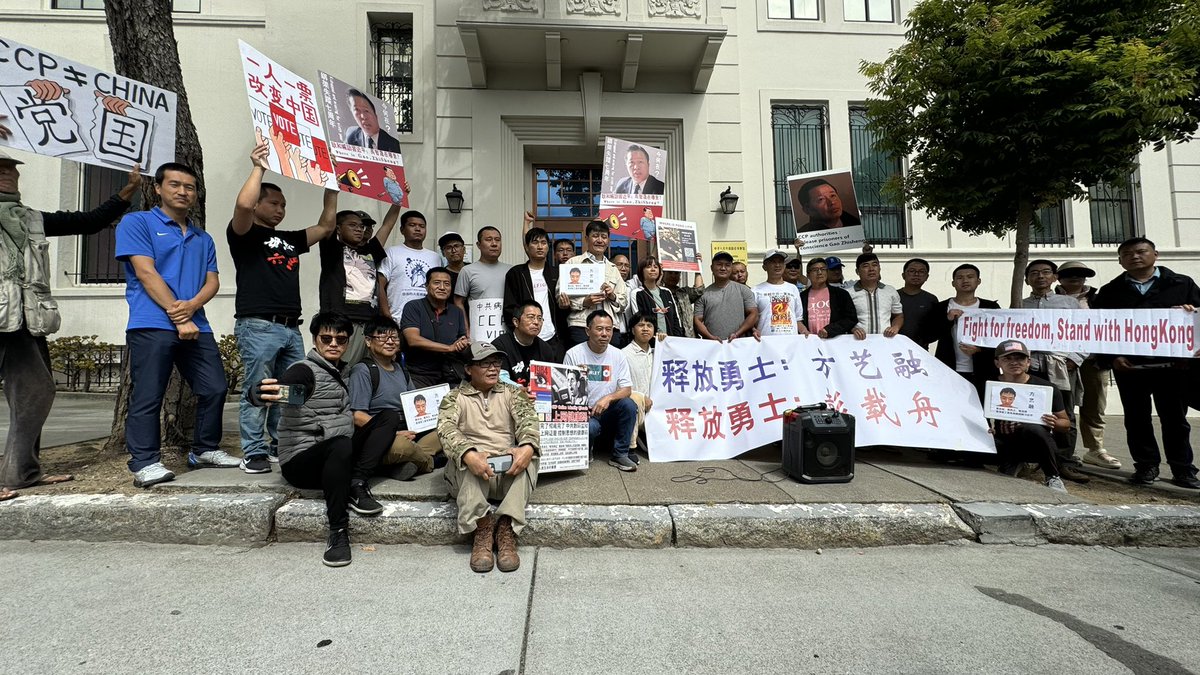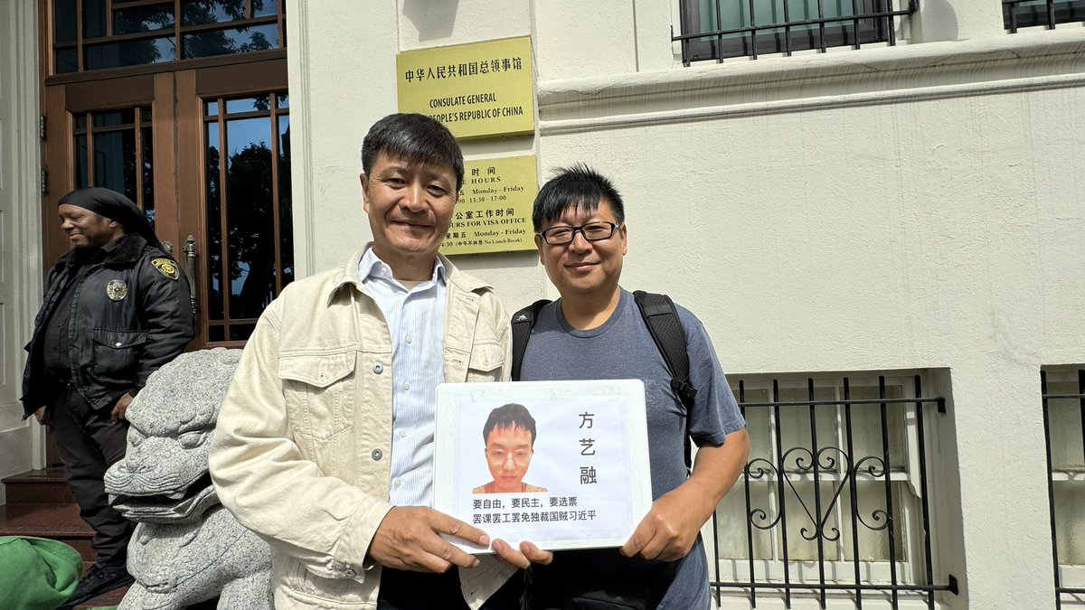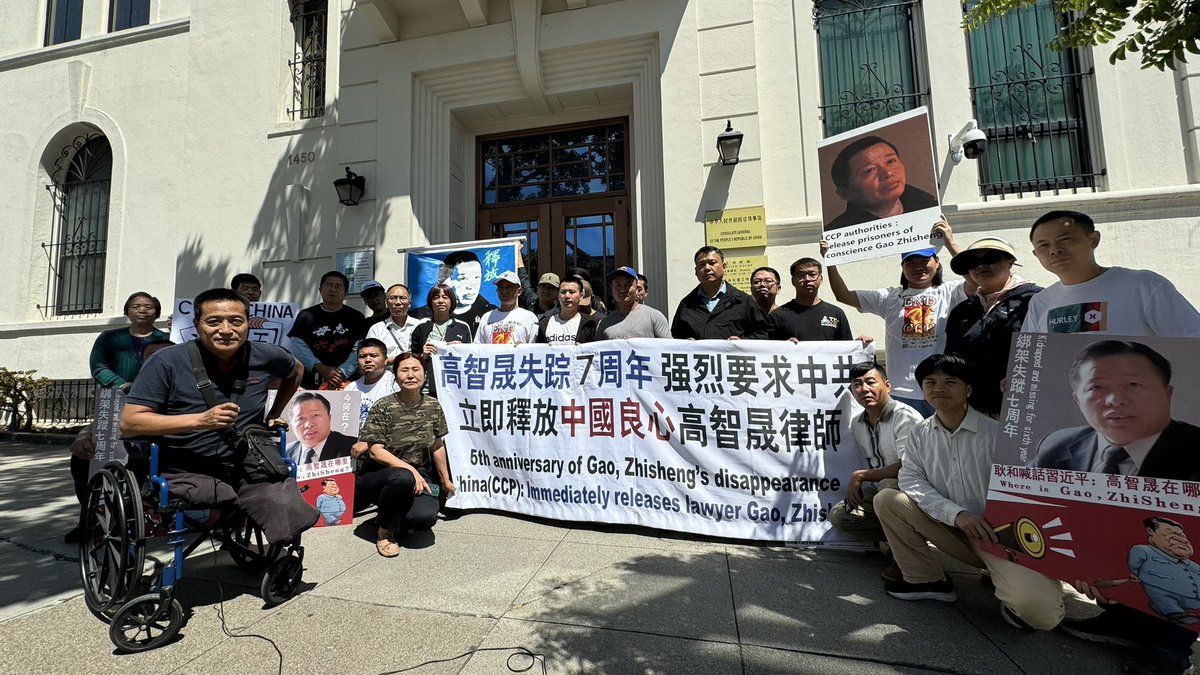 8月10日,高智晟律师的妻子耿和女士、周锋锁、方政、赵常青、陈维明等来自旧金山湾区、洛杉矶、拉斯维加斯和纽约的中国民运、人权人士在中国驻旧金山总领事馆门前举行集会声援刚刚被中国当局抓捕的湖南勇士 #方艺融抗议中国当局让人权律师 #高智晟强迫失踪7年整!