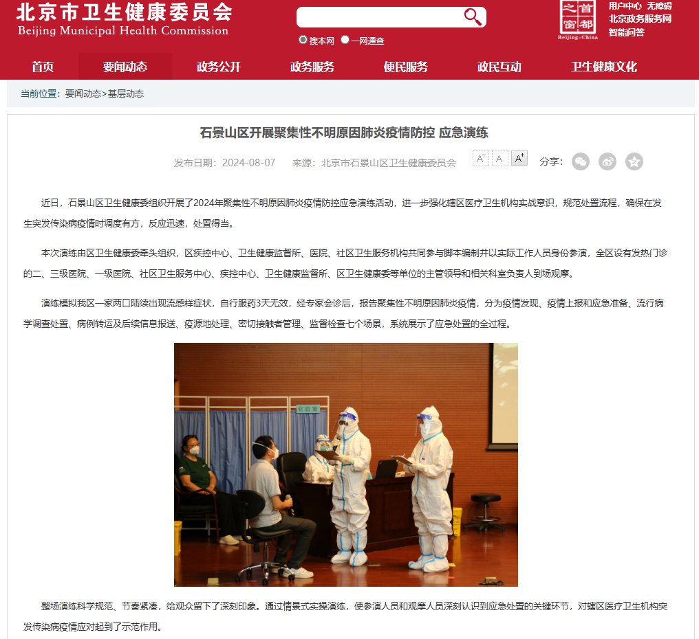 近日,全国多地组织开展不明原因肺炎聚集性疫情应急演练。