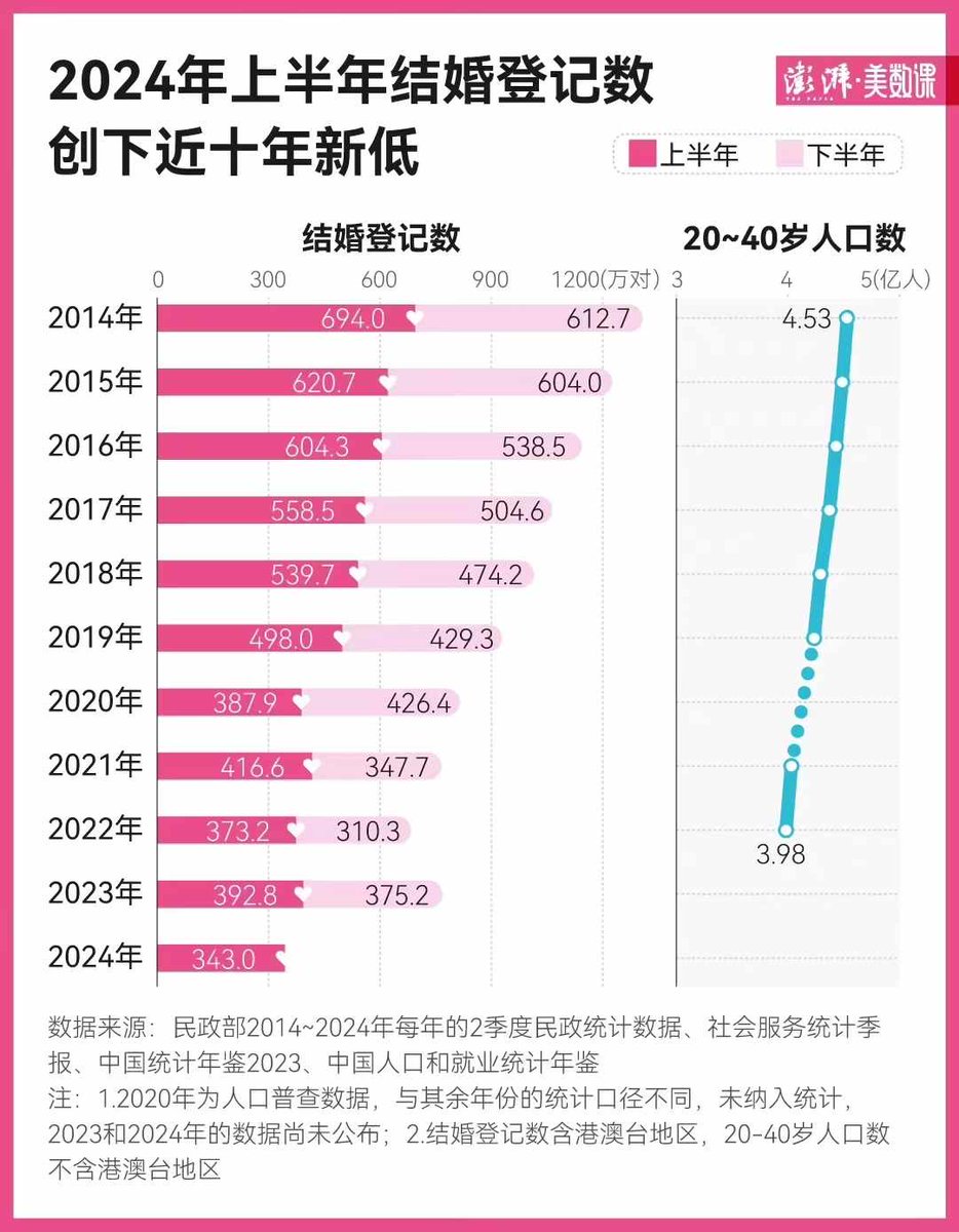 2024年上半年结婚登记数创下近十年新低。