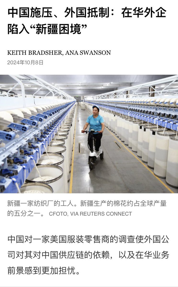 中国施压、外国抵制:在华外企陷入“新疆困境”因中国大规模侵犯新疆人权问题,西方国家要求禁止新疆产品,还加大力度惩罚违反禁令的公司。拥有Calvin Klein和Tommy Hilfiger品牌的美国零售商PVH集团现在进退两难:一边遭遇西方抵制,另一边中国政府还在施压该公司不得对新疆产品采取“歧视性措施”。
