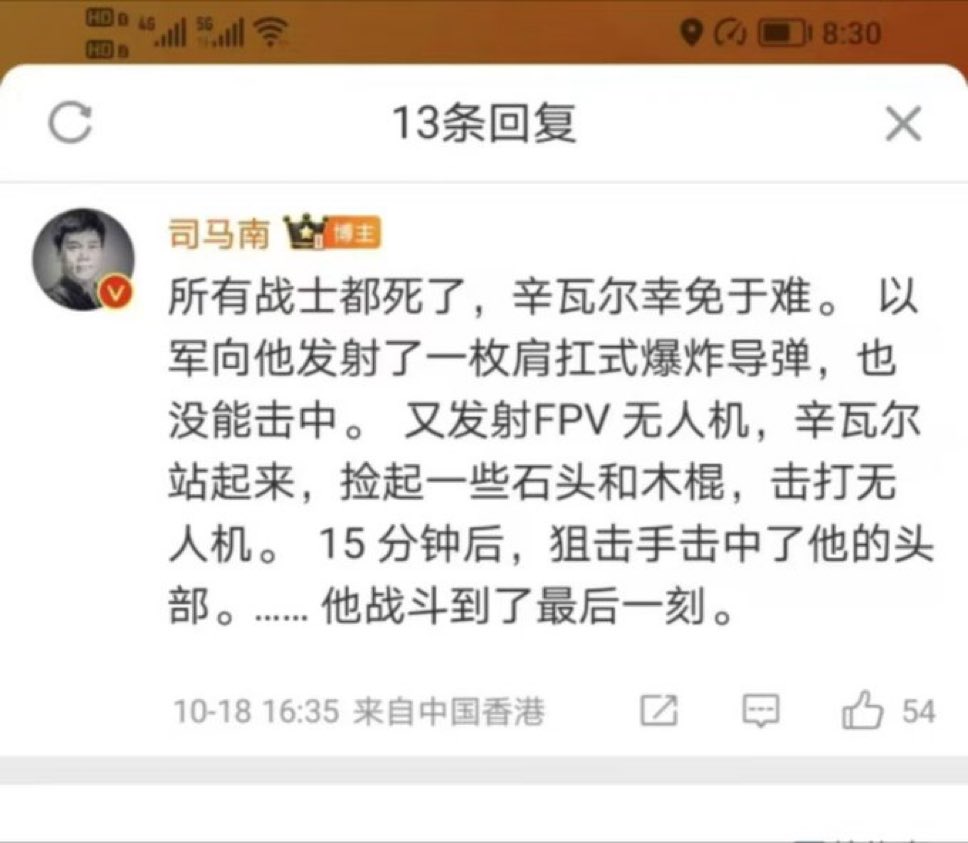 最近碍国大V们纷纷科幻创作,颅内高潮,开启辛瓦尔临死前的多重宇宙😂