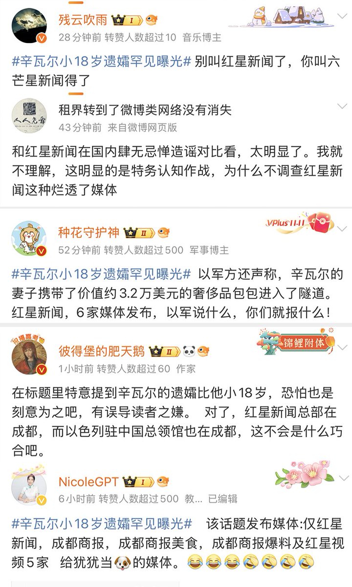 10月20日,红星新闻报道称“辛瓦尔的妻子携带价值约3.2万美元的奢饰品包包进入隧道”引发不少网友的不满和抵制,网友质疑红星新闻收了犹太财团的钱来抹黑辛瓦尔。目前,红星新闻已删除了这篇报道。