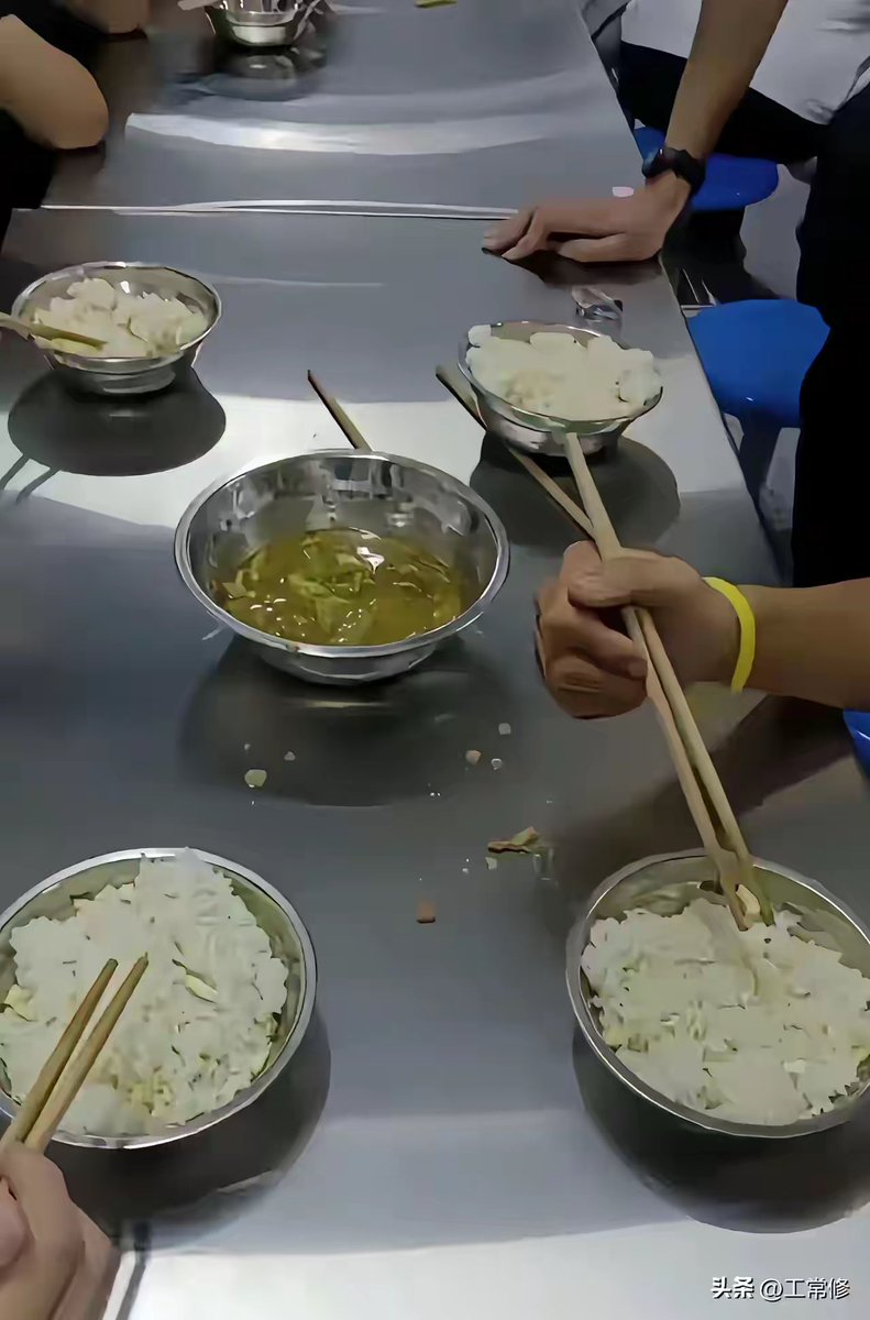 家长中午去学校,不经意间撞见了颇为寒酸的一幕∶学生就餐四人一桌,共吃一碗煮包菜。