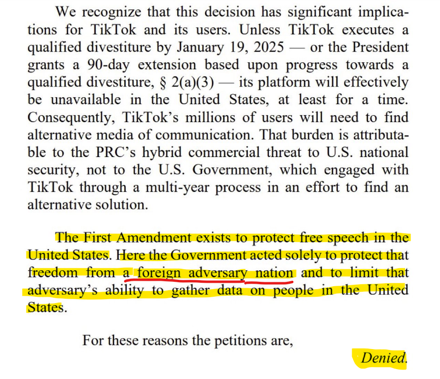 12/6/24: TiKTok 在华盛顿特区巡回上诉法院的案件中败诉,但它没有浪费一分一秒,立即将案件上诉到美国最高法院。特朗普仍有多种途径可能保护 TikTok 在美国的运营