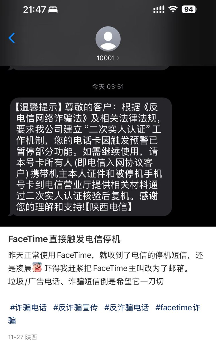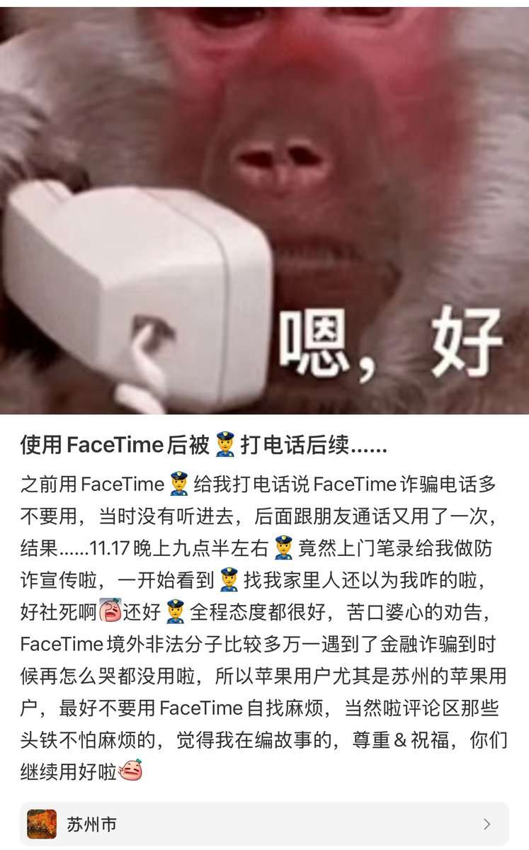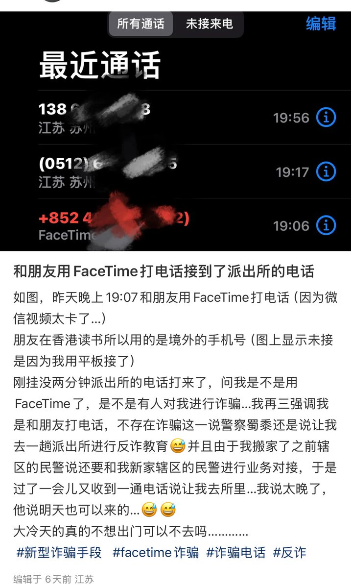 近日,多名网友在社交平台反映,在使用FaceTime功能和境外的朋友通话以后,接着便接到警方电话,被要求去派出所接受反诈教育,还有网友的银行卡和手机卡因此遭到限制。