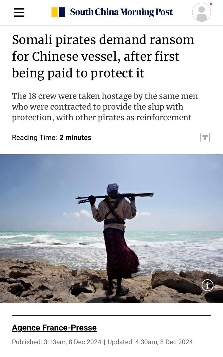 一艘中国渔船在索马里海域被海盗绑架并勒索赎金,据悉这艘渔船曾向绑架自己的海盗递交保护费,结果海盗背信弃义反而绑架了这艘渔船。