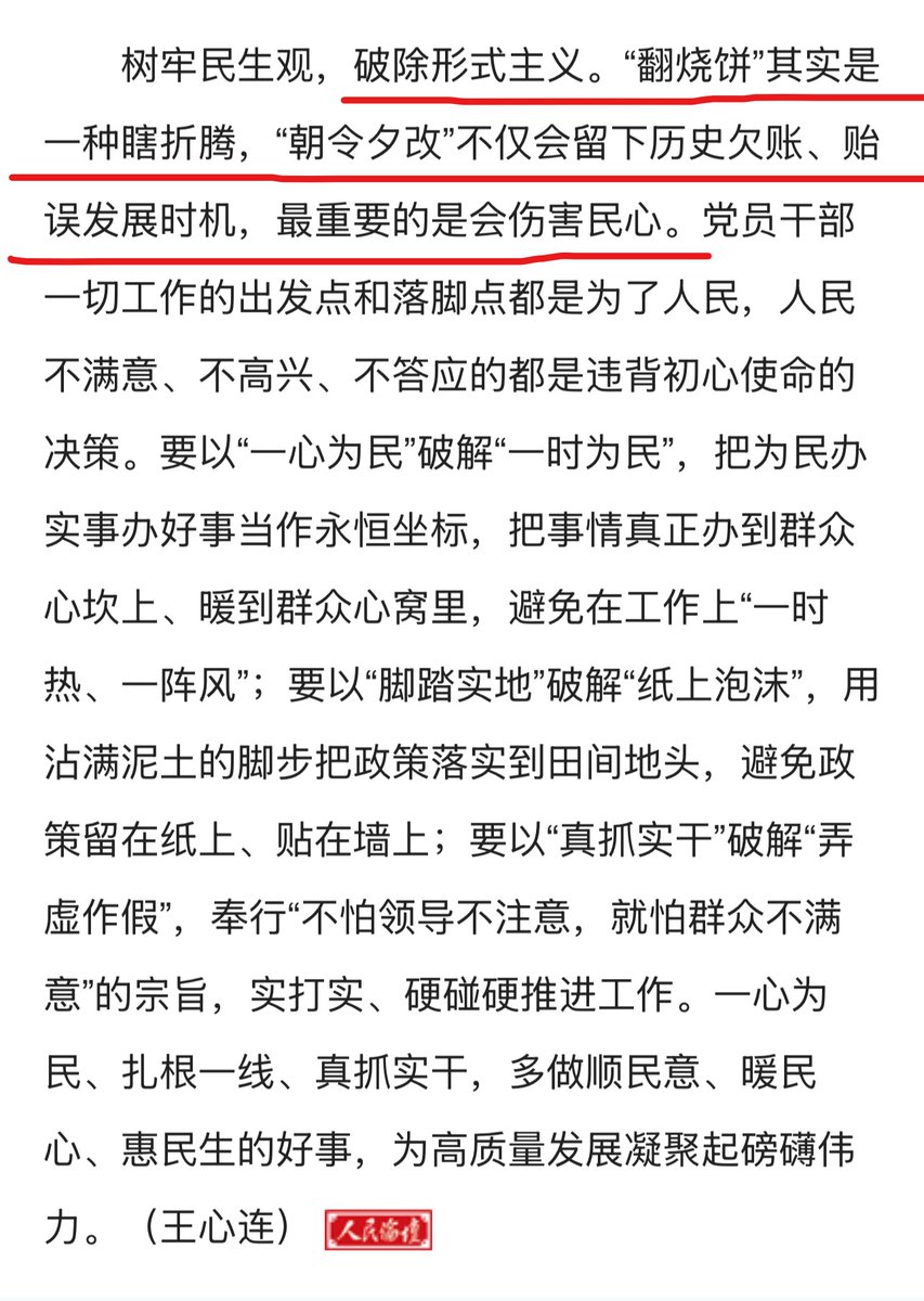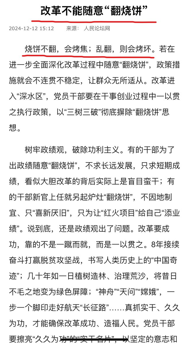 人民论坛网发文:改革不能随意“翻烧饼” 要树牢民生观,破除形式主义。“翻烧饼”其实是一种瞎折腾,朝令夕改不仅会留下历史欠账、贻误发展时机,最重要的是会伤害民心。