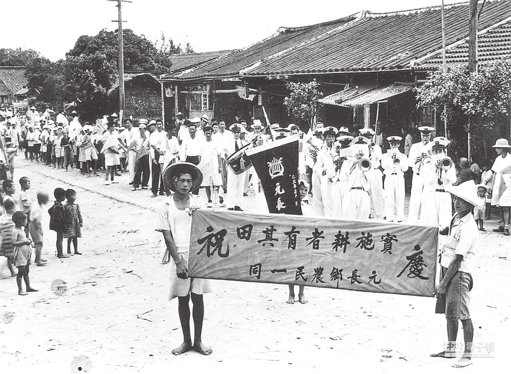 图3:台灣實施耕者有其田10周年有成,陳誠(左)接受致謝錦旗。