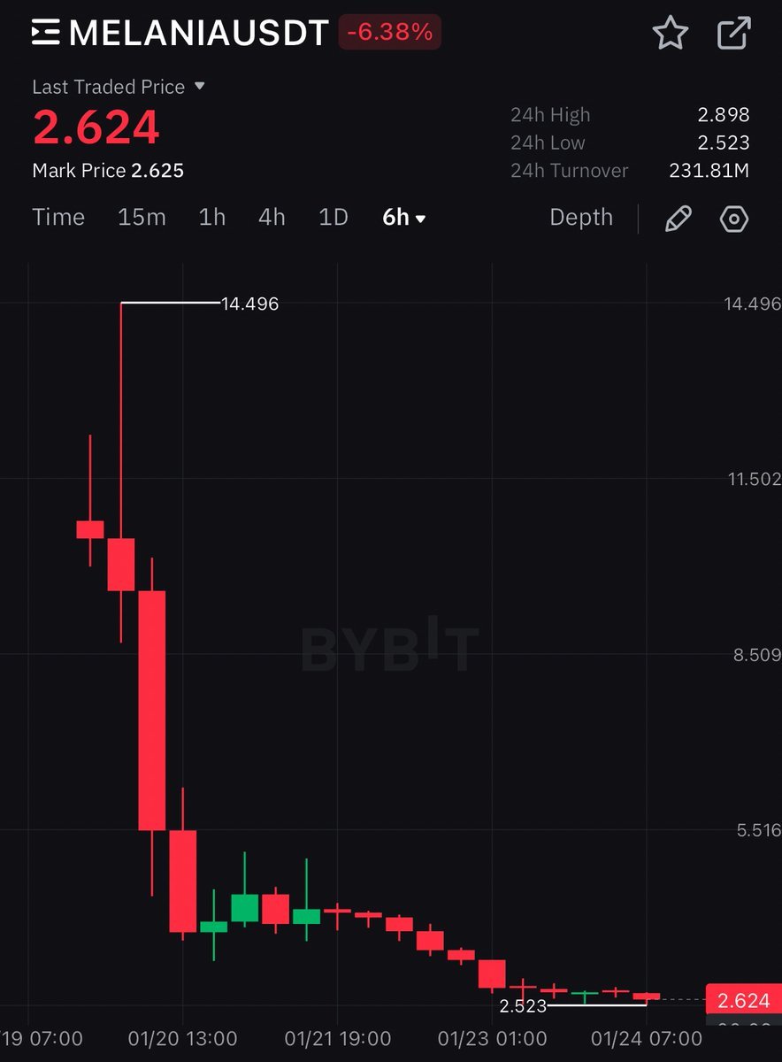 川普老婆币,梅拉尼娅币现在比1月19日的历史最高点下跌了约80%。