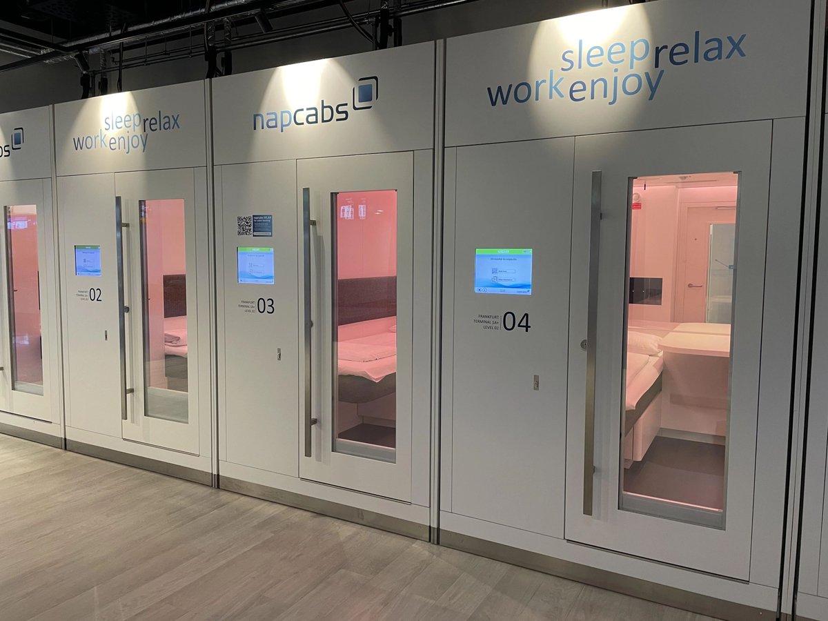 Frankfurt airport in Germany has nap cabins that can be rented by the hour