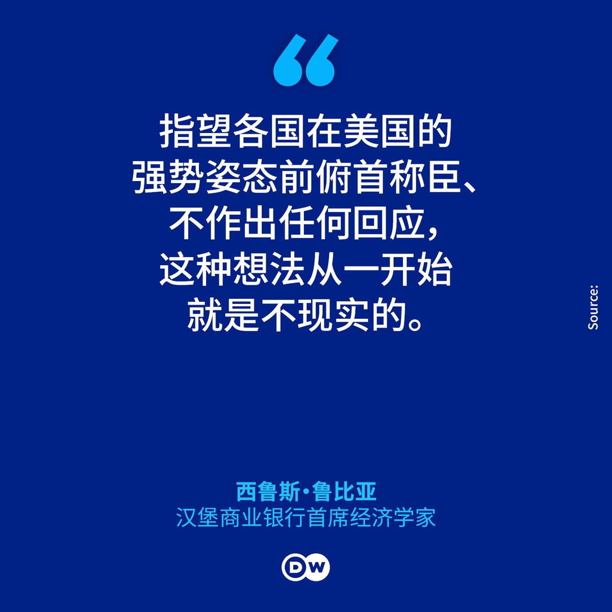 “中国此前对美国的关税行动多以防守为主,而今天中国的强硬反击标志着这种态度的终结。美中贸易战已全面展开。后续的谈判恐怕只能取消少量关税。美中之间的贸易将会大幅萎缩。许多中国企业可能会尝试将无法销往美国的产品转向欧洲市场。这种新增供应短期内可能会压低欧洲的通胀率,直到欧盟也开始对中国的竞争加以反制。贸易战没有赢家,只有输家。”