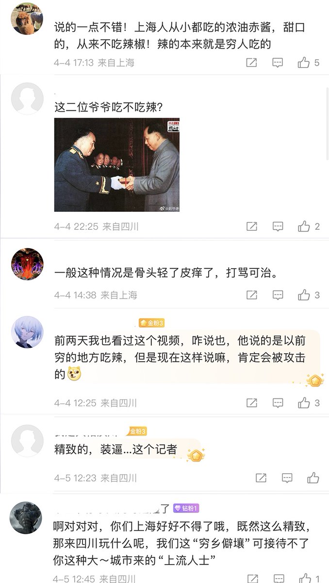 近日,中国食品报发布的视频中提到:“精致的上海人也接受了属于穷人的辣味道”引发争议。有人表示这是在歧视底层人,还有人表示“重口味的地方都穷,因为重口味好下饭,容易吃饱,这是经济规律” 目前,中国食品报已删除这则视频。