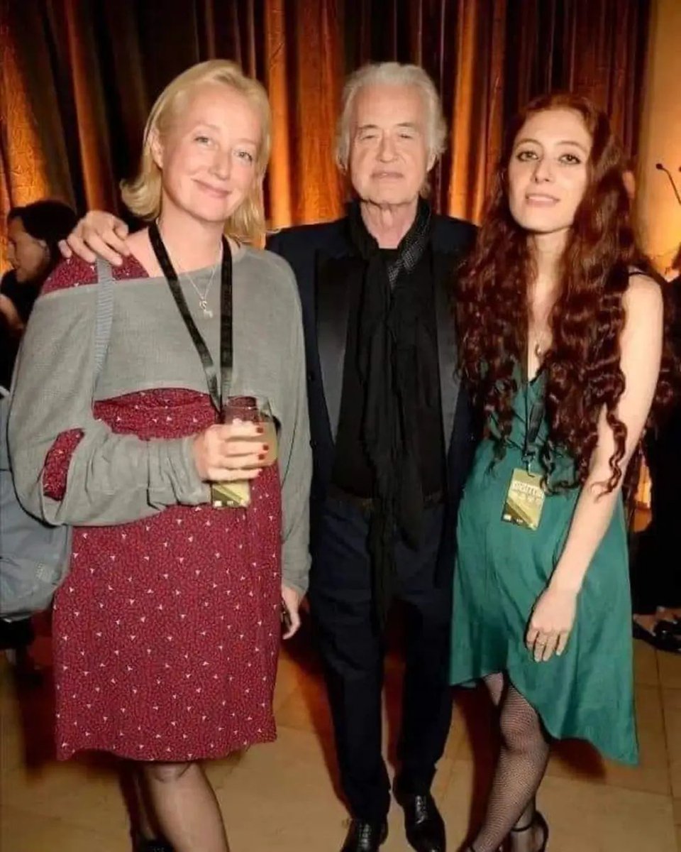Jimmy Page, 81, with his girlfriend Scarlett Sabet, 35 (right) and 54-year-old daughter Scarlet (left) at an event in London.