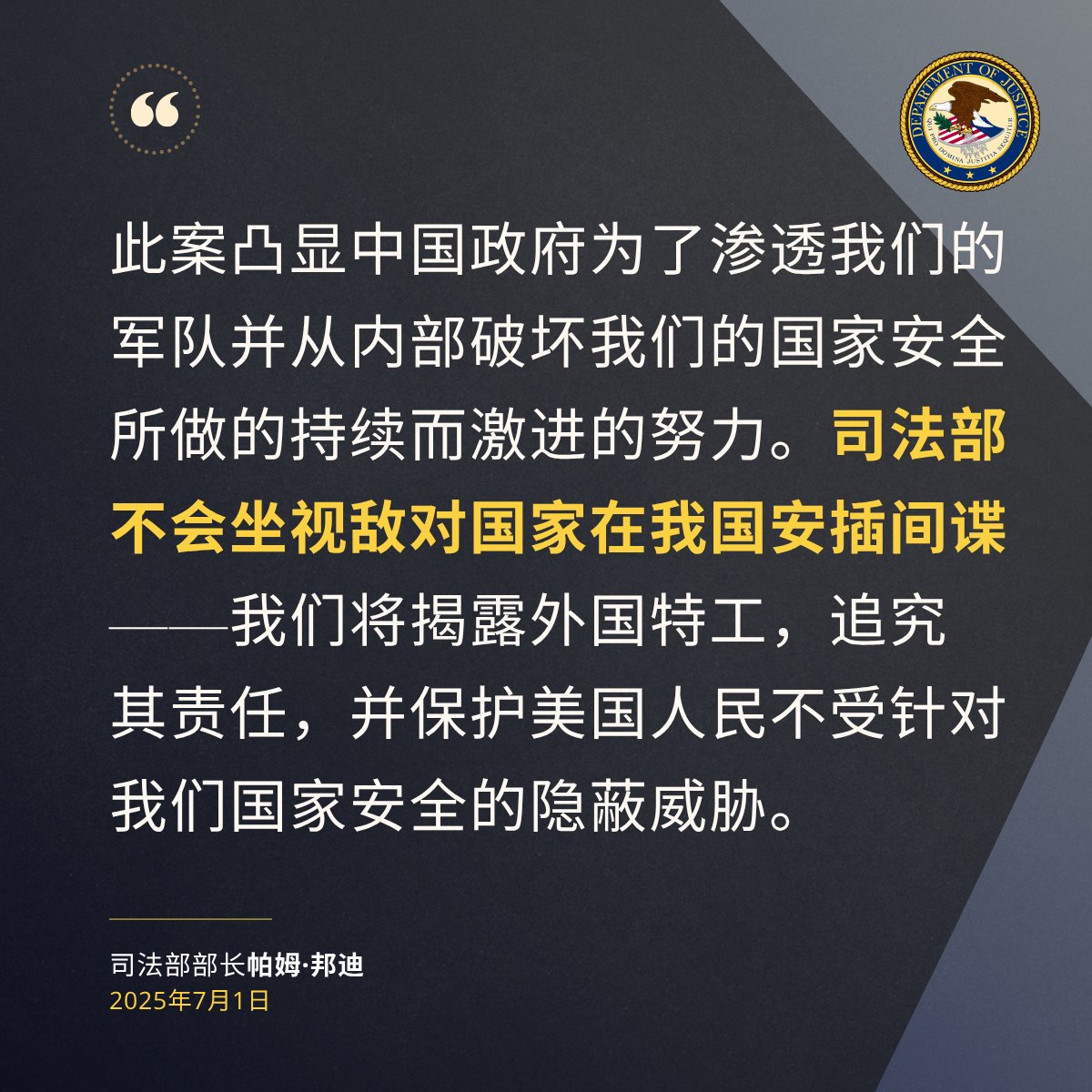 美国司法部指控两人充当中华人民共和国政府特工他们的被捕挫败了中华人民共和国国家安全部在美国秘密运营的情报网络🔗: