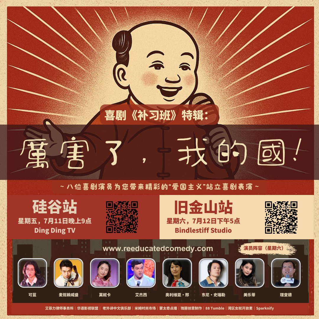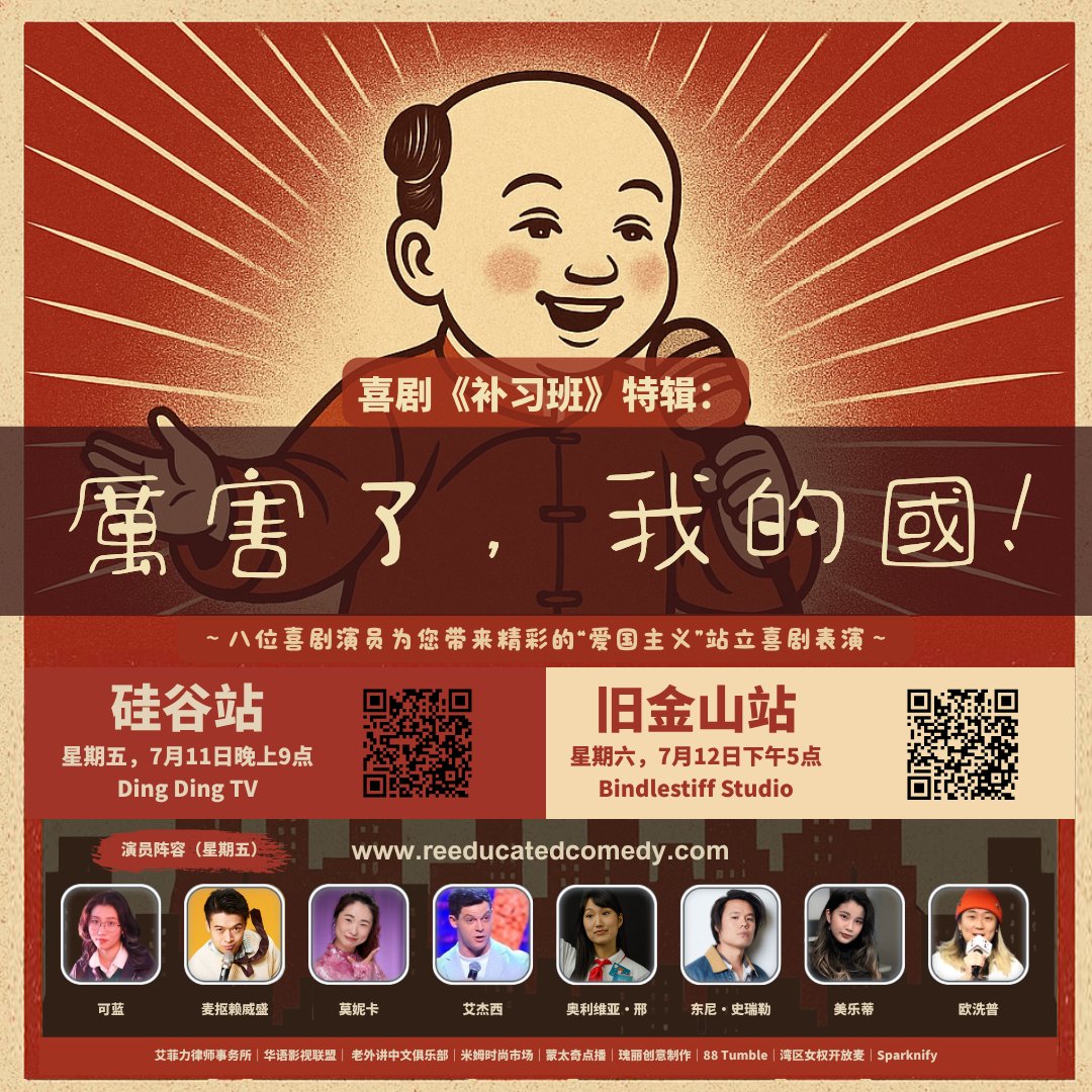 「補習班」脫口秀是難得不受廣電審查、百無禁忌的中文脫口秀表演!也是第一次來到北加以下犯上!雖然座標東海岸的我這次無法參與,但還是想傳播一下反叛的自由之音!各位住在北加的朋友們不要被第二張海報嚇跑,一定要去看: