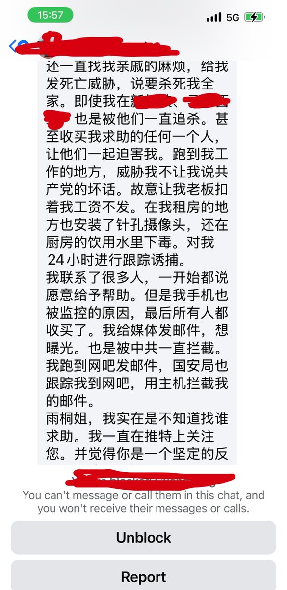 后来我看到他又发私信,让我帮忙找媒体。我自己原来所在的媒体已经关闭,即使不关闭,我们应该也不会盲目的去报道一个自称被中共追杀的案例。我没有回复,不仅是因为忙,而是疑虑未消。