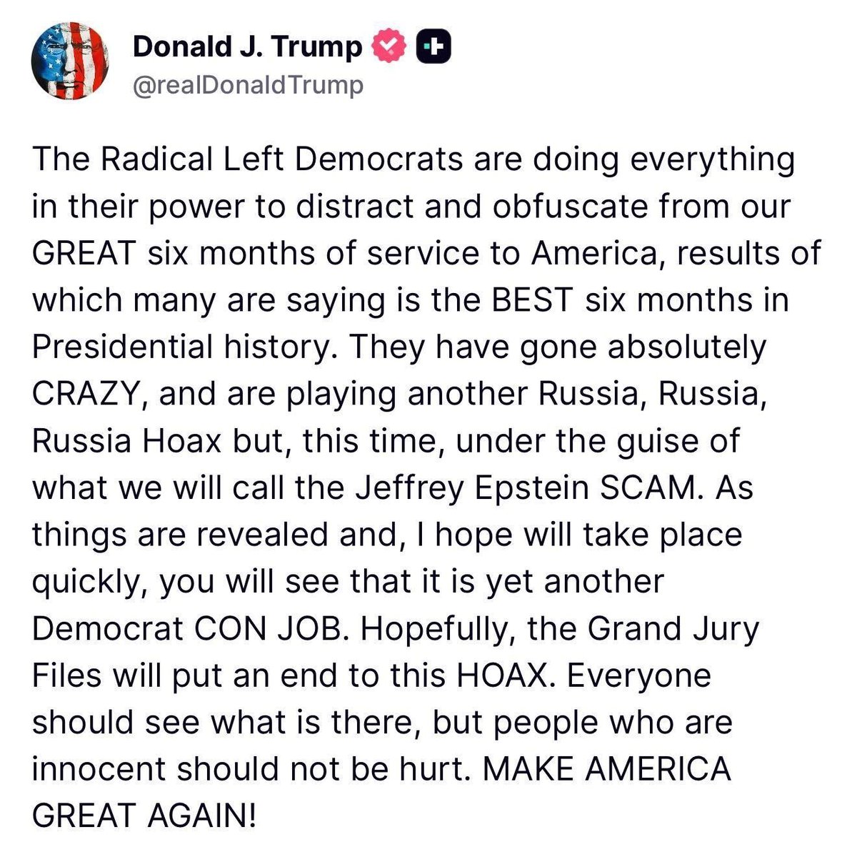 BREAKING: Trump calls Epstein files issue a 'scam'