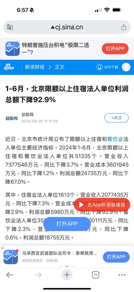 官方数据说今年上半年中国货物贸易出口13万亿元,历史同期首次突破13万亿元,同比实现7.2%的较快增长,服务出口16883亿元,同比增长15.0%,上半年全国餐饮收入同比增长4.3%,2025年上半年,国内出游人次达17.94亿,同比增长26.4%;国内游客出游总花费达1.8万亿元,同比增长18.6%。而北京酒店业上半年利润下降92.9%,这究竟是怎么回事!