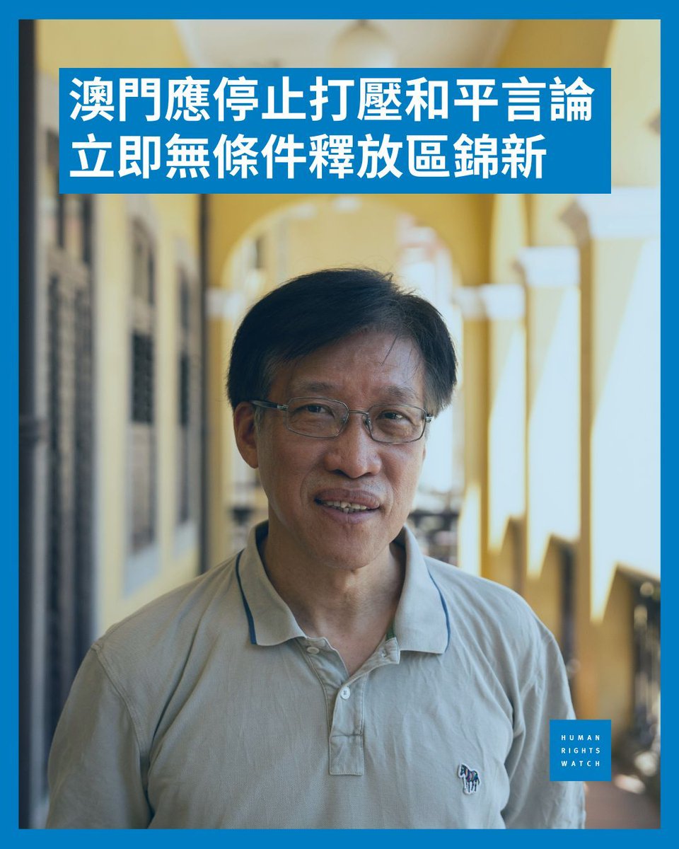 #區錦新 原本在小學任教,1989年中國政府血腥鎮壓天安門民主運動後走入社會運動。此後,他在 #澳門 小小的公民社會中成為要角之一。30年來,區錦新所屬的澳門民主發展聯委會每年主辦燭光晚會紀念六四鎮壓,區錦新和其他主辦人經常為此遭受打壓,包括肢體攻擊和失去工作。