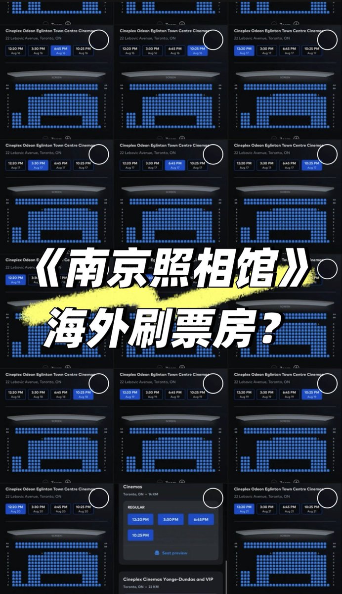 网友投稿电影南京照相馆在海外存在刷票房的嫌疑我搜了多伦多这几场,确实中间座位都是整齐划一的被卖掉的