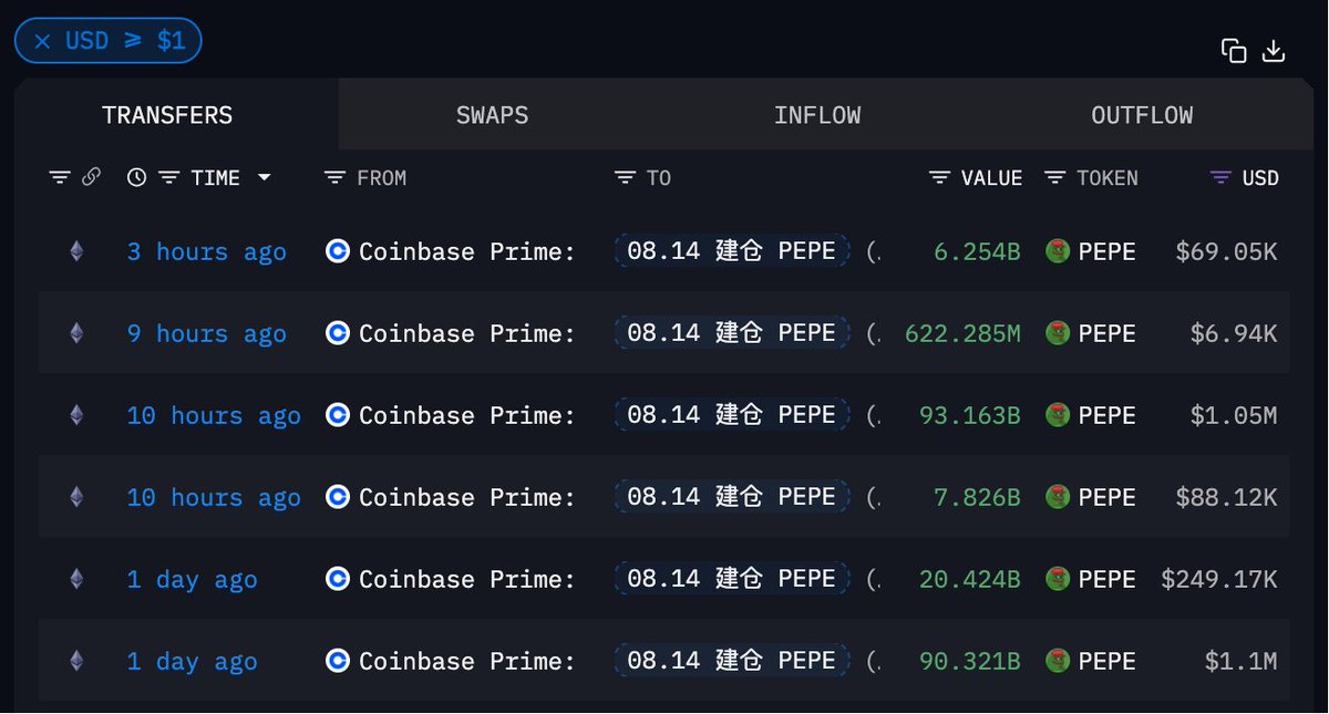 前天首次建仓 $PEPE 的新地址 0x122...002bA 疑似在凌晨补仓了🐸过去 10 小时再次从 #Coinbase 提出 1078 亿枚 PEPE,价值 121 万美元;目前他共持有 2186 亿枚 PEPE,按照提出价格估算,平均成本约为 $0.00001173,浮亏 14 万美元钱包地址本文由 #Gate 大门交易所 |