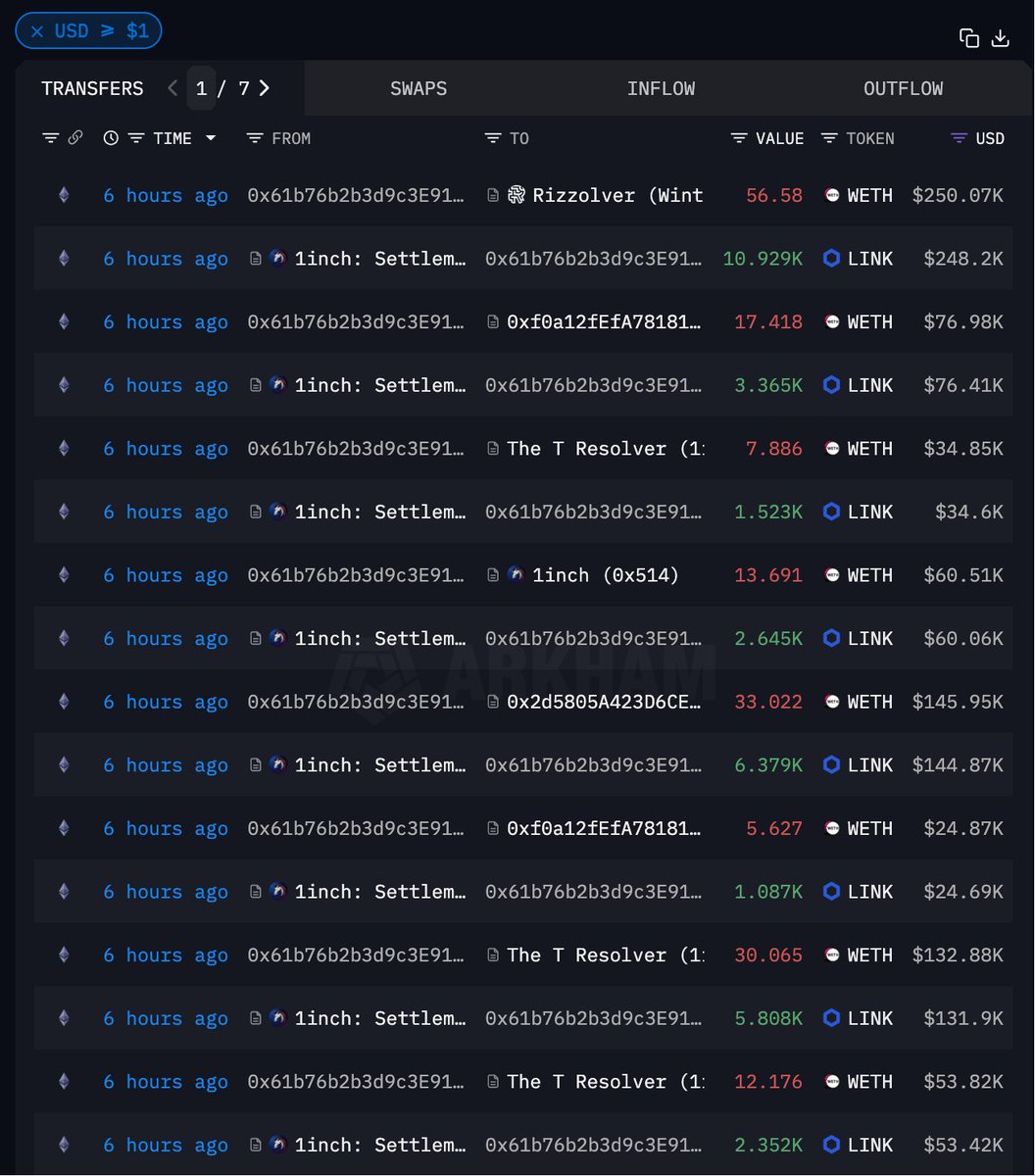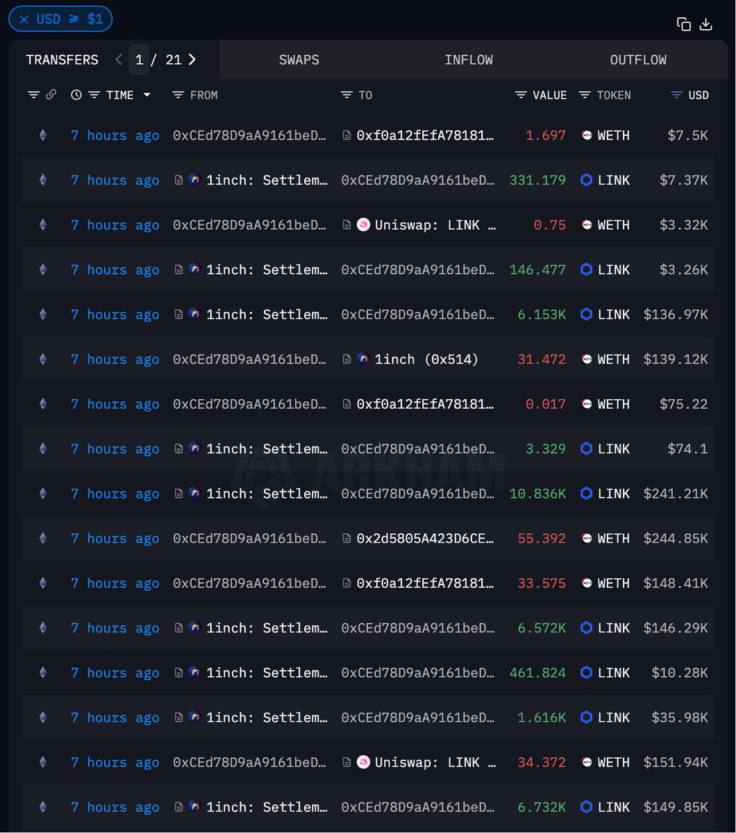 ETH 暴跌,转而押注山寨了?两个地址在过去 7 小时内将 1,791.5 $ETH 换仓为 351,834.6 $LINK ,总价值 784 万美元🔸 地址 0xCEd...837b9:均价 $22.12 买入 27.6 万枚 LINK🔹 地址 0x61b...00EC3:均价 $22.71 买入 7.5 万枚 LINK钱包地址