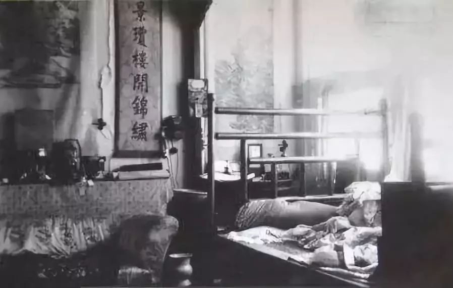 图3婉容卧室床上的未收拾带走的绣花枕头。可以看到储秀宫里的床褥都没有带走。