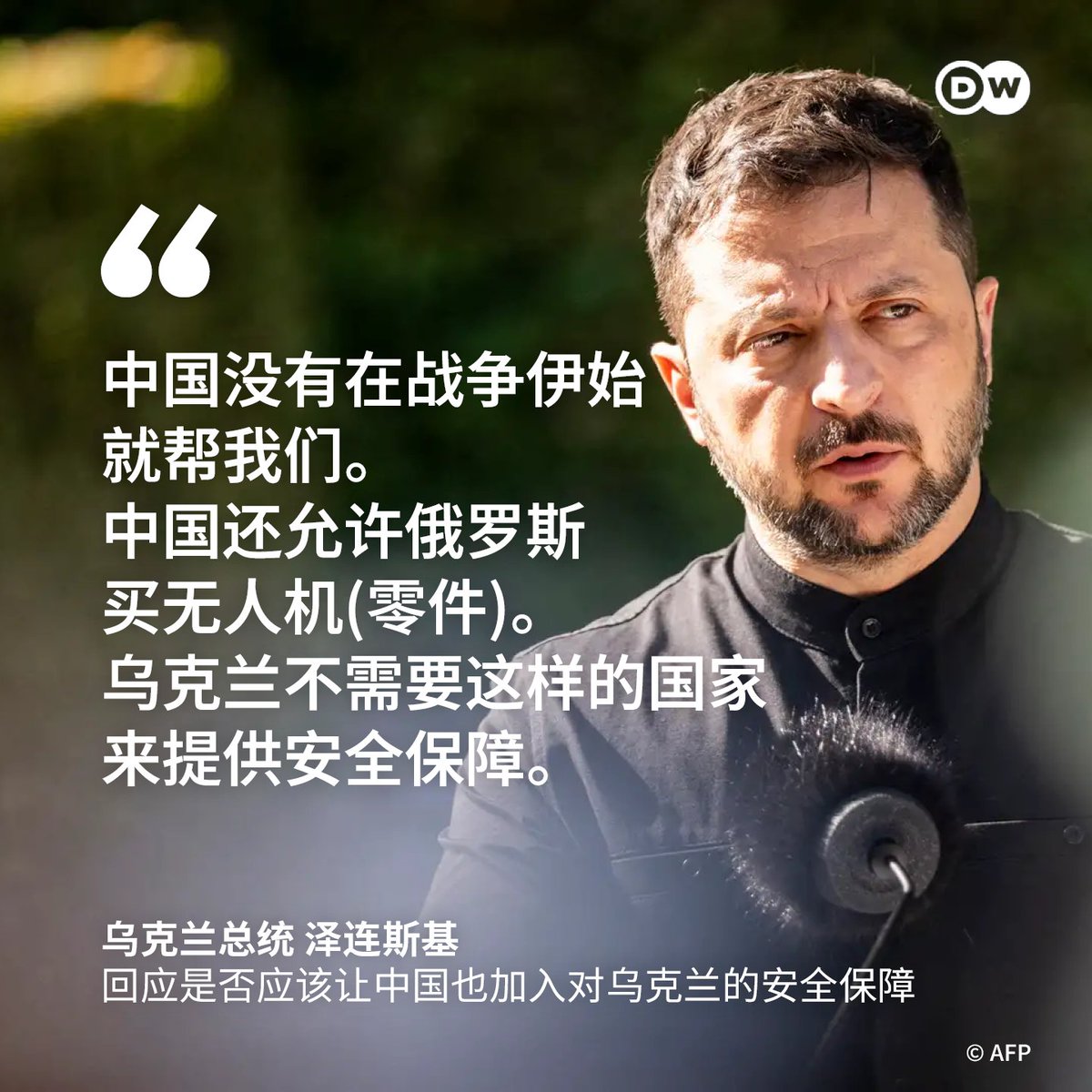 与此同时,泽连斯基明确拒绝了让中国也参与到对乌安全保障之中的想法。他说,中国没有帮助乌克兰,也没有在乌克兰最需要的时候伸出过援手,乌克兰不需要这样的安全保障者。