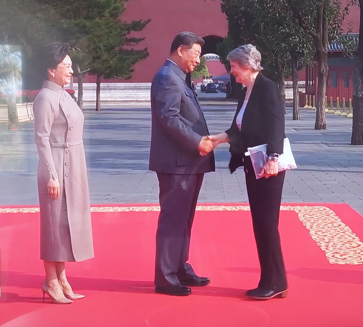 Helen Clark welcomed by president Xi to China' s 80th celebrations of its victory over Japanese fascism and aggression a few minures ago.