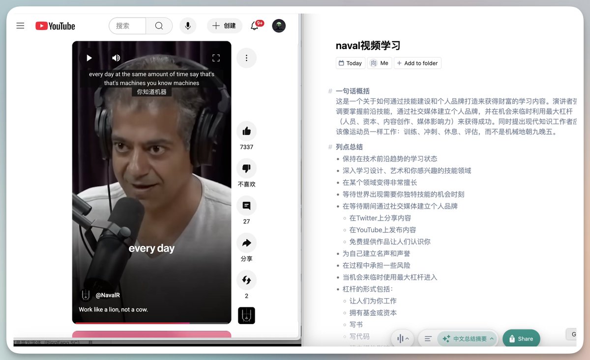 发现了!最强语音转写神器藏在Lenny大礼包Lenny大礼包里有个叫granola的应用。原以为就是做会议纪要的AI工具,平平无奇。钉钉、飞书不是都有AI会议纪要?直到看前同事 zara的用法才知道。不止会议,任何音视频,它都会后台监听转写文本。一键摘要总结(支持自定义Prompt)