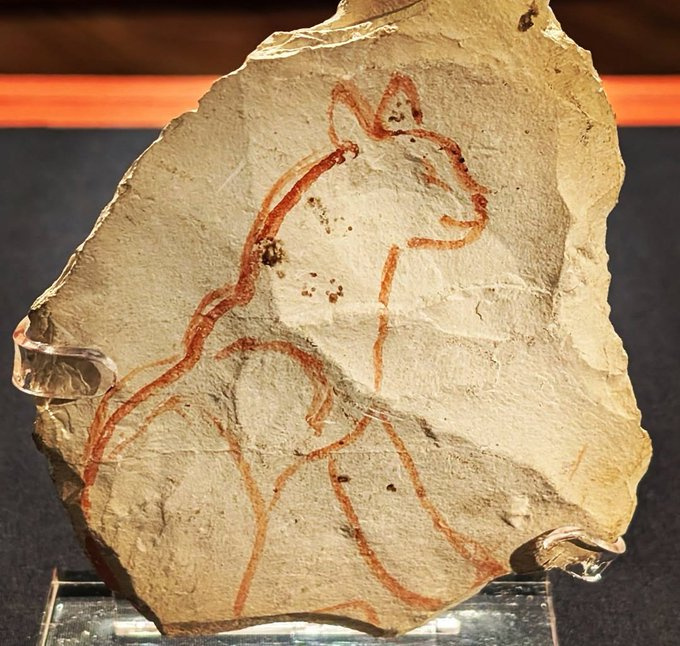 刻于石灰岩碎片上的猫咪素描,约3200年前,古埃及。