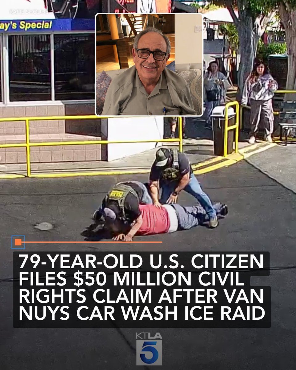 79岁的美国公民拉菲·奥拉·舒希德,9月9日,在移民局突击检查他位于洛杉矶的洗车场时,蒙面特工推搡并殴打他,打断肋骨,他正在起诉美国政府,索赔5000万美元。 他说当时正准备给特工拿文件说明他的工人都是合法工作的。