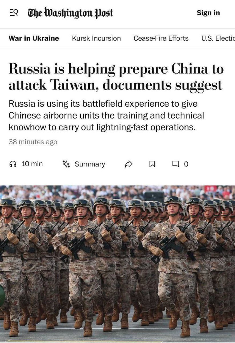 据《华盛顿邮报》援引泄露文件报道,根据一份价值5.8亿美元的合同,莫斯科同意为中国训练一个两栖营,并为可能对台湾的攻击提供实战经验。训练将在俄罗斯和中国进行。