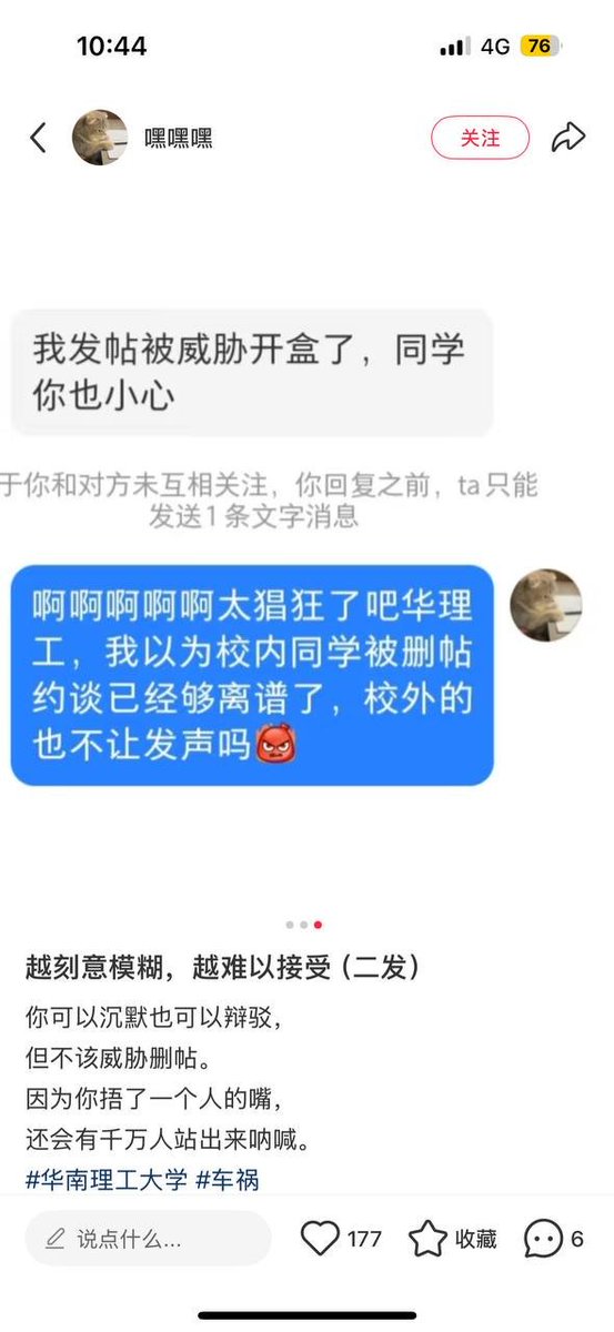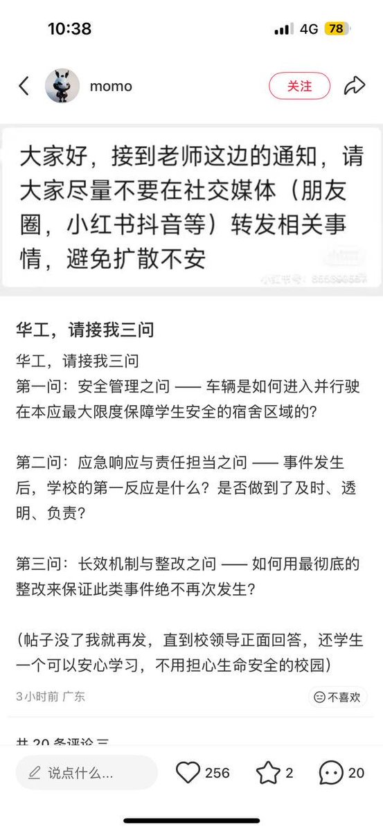 9月29日,华华南理工大学学生在网络上发声的帖子被删除,部分学生被约谈。学校教师要求学生避免在社交媒体上发声,避免扩散不安。