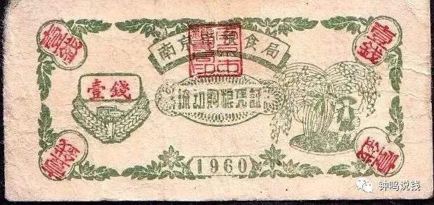 一两即50克,相当半个窝头或馒头,这面额够小了,却远不是最小面额。著名的小面额粮票是上海的沪半两(25克),可买一根小油条,但它并不是最小,更小的是南京60-63年发放的宁一钱,面额仅5克。5克粮食麻雀都吃不饱,但是人要凭它才能买到一碗豆浆或五分之一根油条。