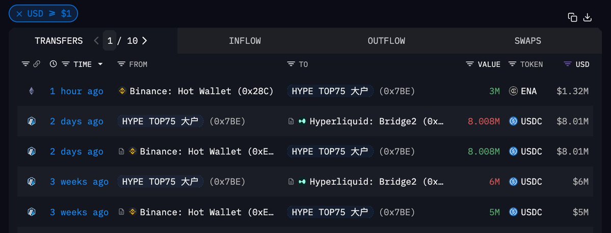 昨日加仓 $HYPE 的 TOP36 大户今天又在加仓 $ENA 了🤨1 小时前该地址从 #Binance 提出 300 万枚代币,价值 132 万美元,这也是他首次建仓 ENA;ENA 近七天下跌近 20%,可能是在博基于 Ethena 业务币价迟早会反弹了钱包地址本文由 #Gate 大门交易所 | 赞助