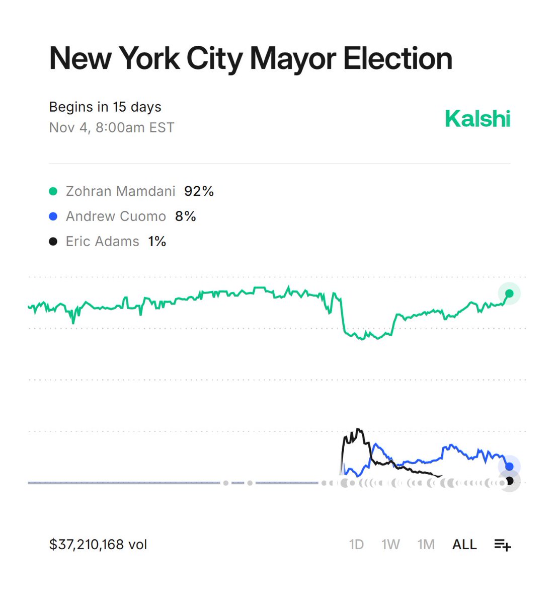 UNITED STATES: Zohran Mamdani's chances of winning the New York City mayoral election have risen further to 92%, according to prediction market