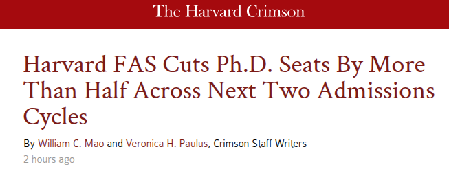 🚨Breaking: just announced massive cuts to dozens of its PhD programs, citing “financial pressure.”