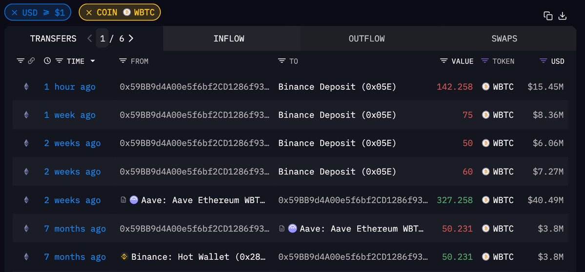 2020 年起囤积 $WBTC 的大户 0x59B...6325F 疑似清仓,成本低至 $53180👀该地址在 2020.09 - 2025.04 期间以均价 $53180 建仓 352.43 WBTC,总价值 1874 万美元;然后在过去 2 周内以 $113463 分四次充值进了 #Binance,若卖出将获利 2124.5 万美元,五年回报率 113%钱包地址