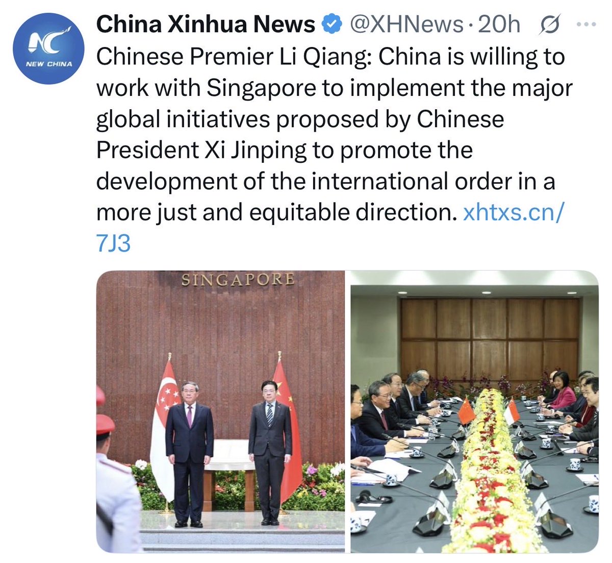 新加坡總理黃循財在會見到訪李強時,不僅重聲新加坡一貫的「一個中國」立場,還加碼「反對台獨」。至此,新加坡的台灣問題立場與西方分道揚鑣。這引起台灣輿論強烈不滿。
