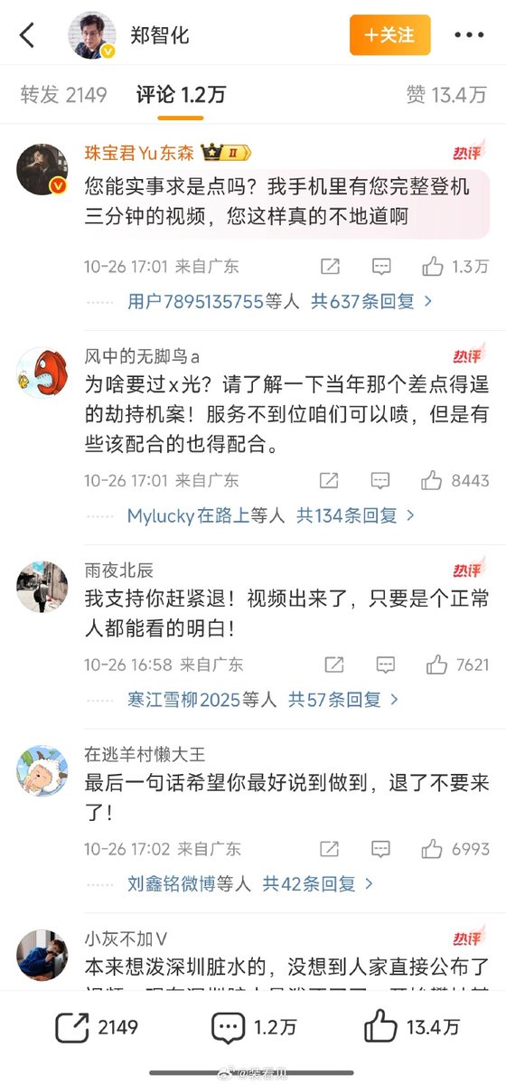 在监控片段曝光后,郑智化的评论区已经沦陷。