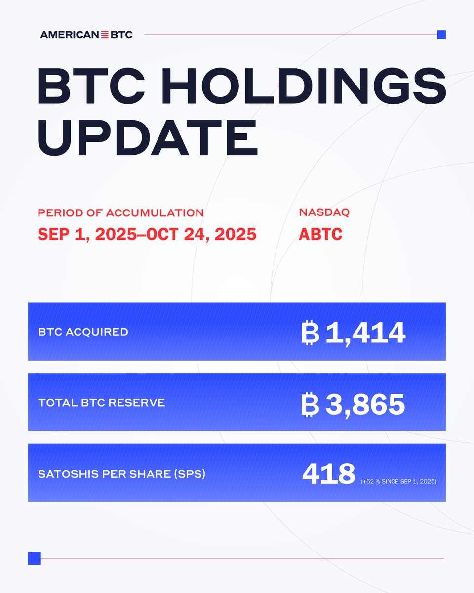 On March 31st, 2025  was formed (0 Bitcoin) September 3rd, 2025, 5 months and 3 days later, we went public on the NASDAQ as ABTC (2,465 Bitcoin) Today: October 24th, 2025, just 1 month and 21 days from our public debut (3,865 Bitcoin) 6 months and 24 days later, we are