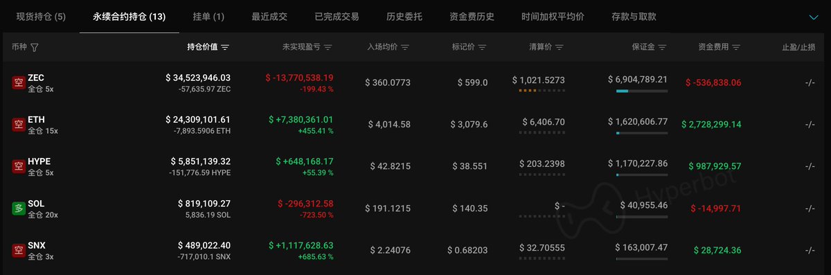 别人玩 $BTC / $ETH / 山寨都输赢几十回合了,Hyperliquid 上 $ZEC TOP1 空头还浮亏着 1377 万美元🥹 地址 0xd47...51A91从十月底 10x 做空 ZEC 至今,币价最高涨至 $750,是开仓价 $360 的 2.08 倍,一路扛单到现在资金费都交了 53.6 万美元 不知道是在套保,还是骑虎难下了 传送门 👉 https://t.co/kzjXZ9K0TG