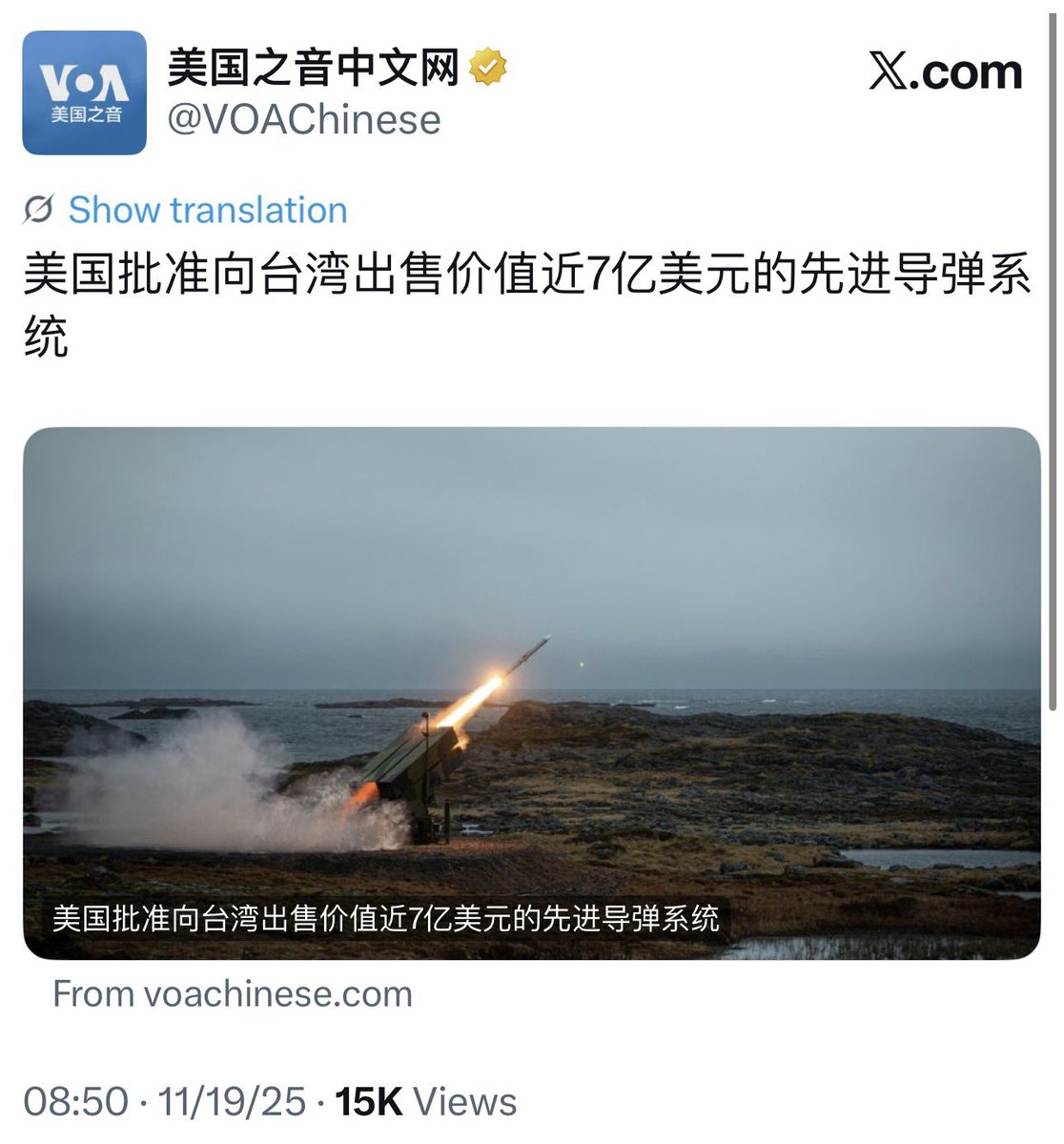 川普政府一週之內第二次向台灣武器輸送,與中共囂張有關。